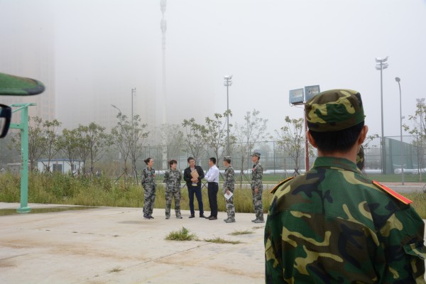 在训练场地,党委书记王福春与承训部队官兵进行了亲切交谈,他首先向连日来辛苦承训的官兵们提前送上了节日的问候。之后他又对承训官兵们表达了谢意,并高度赞扬了官兵们吃苦耐劳的精神品质和艰苦朴素的工作作风。此外,他还详细询问了我院2016级新生的军训情况,见证了我院新生的军训成果。最后他指出,军训是新生入学的第一课,是大学生锻炼身体素质、磨练意志品质的好机会,军训不仅能增强学生的组织性。纪律性,还能培养他们的团队意识和坚强的意志品质,希望承训官兵能够严格要求,科学施训,切实提高军训水平,达到预期效果。