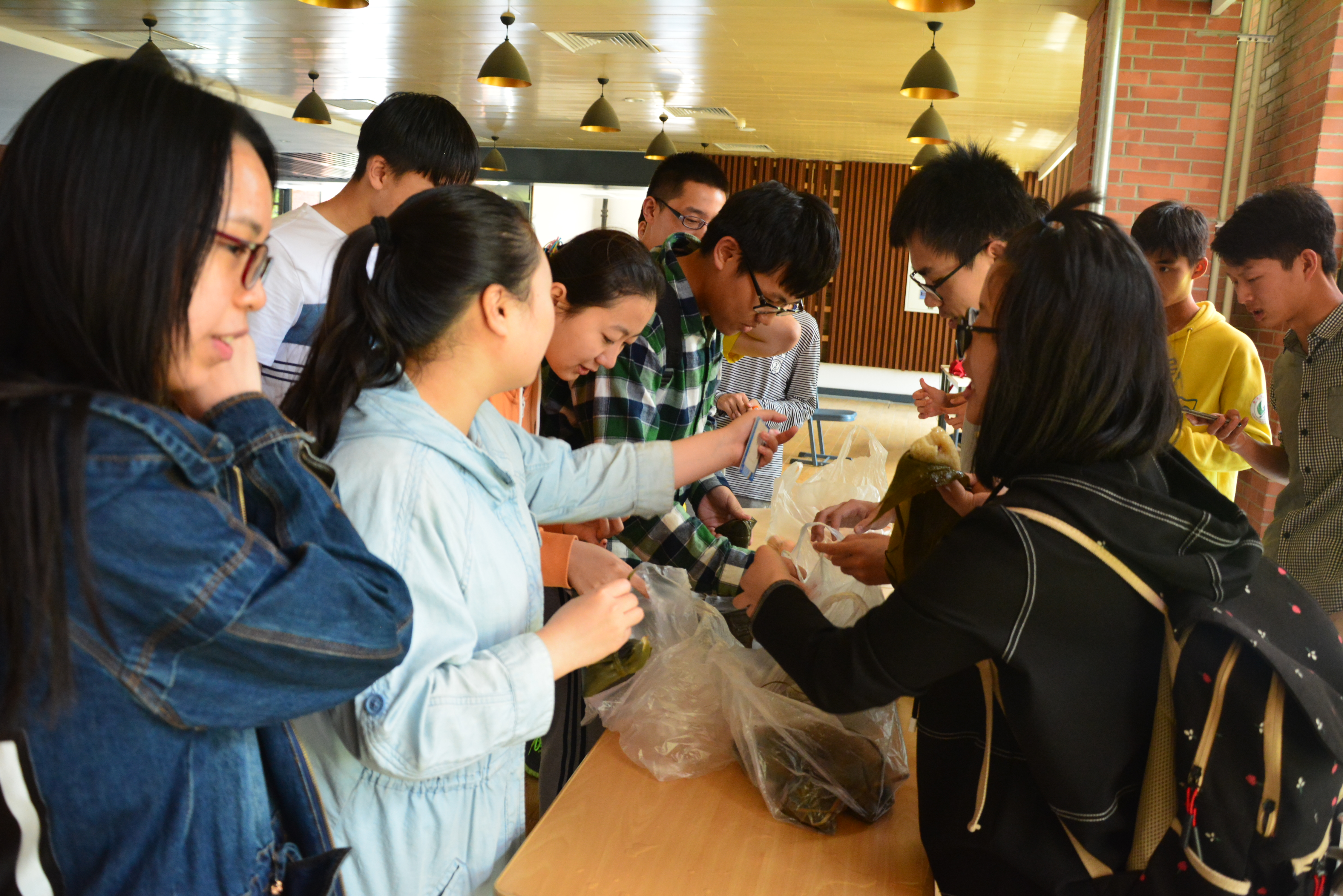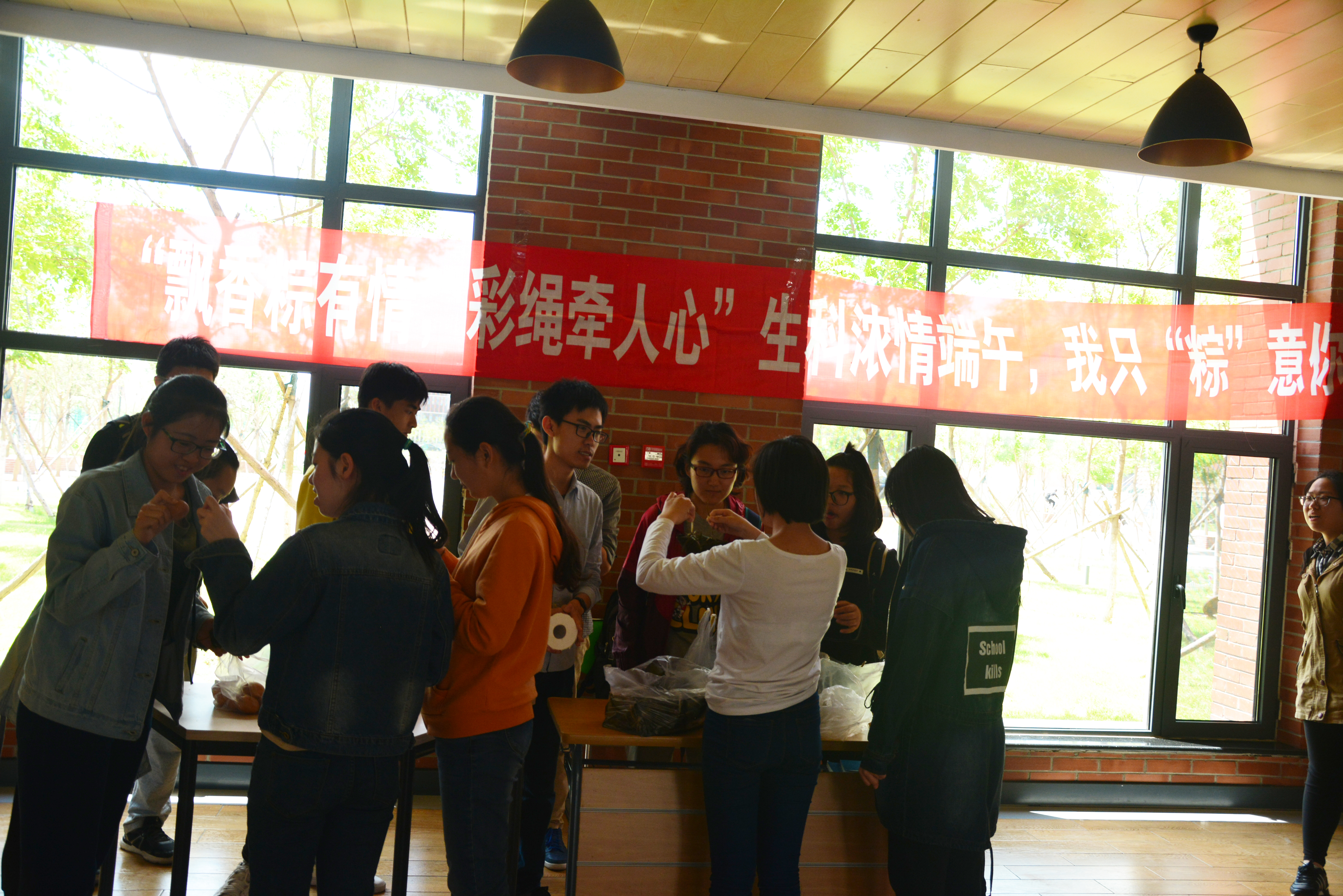 学生会为同学们准备了粽子和鸡蛋等美食和五彩绳等纪念品,使同学们置身于端午节的传统气氛之中,现场的猜谜游戏也让大家在体验传统文化的同时快乐过端午。