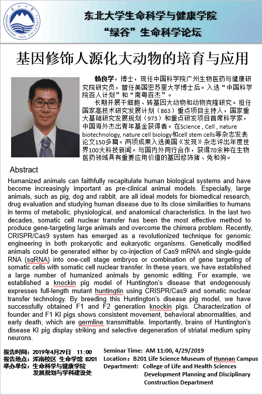 生命学院“绿谷”生命科学论坛讲座公告