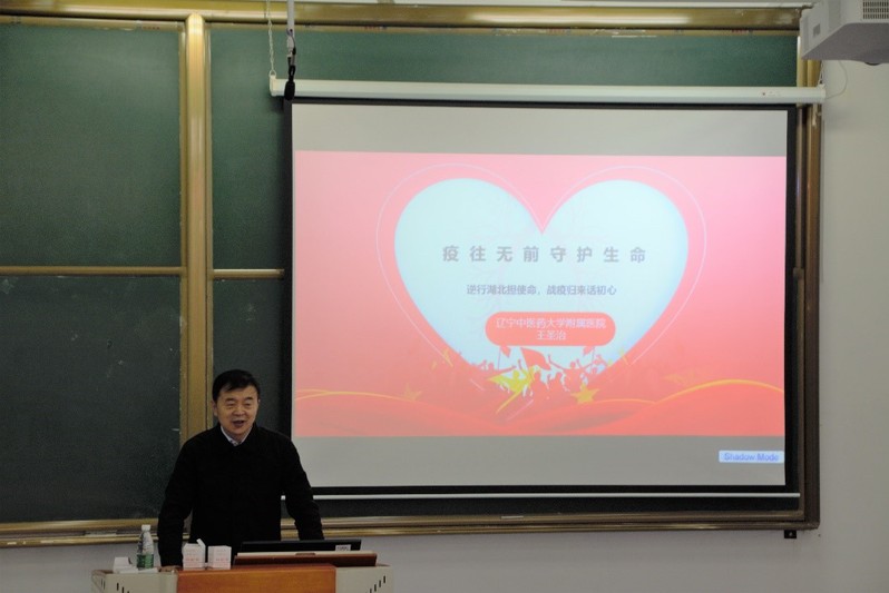 11月11日中午,生命科学与健康学院党委党校“助梦起航,青春向党”系列活动之“疫往无前,守护生命”抗疫英雄讲座在浑南校区生命学馆B101举行,学院党委邀请辽宁援鄂医疗队队员、辽宁战“疫”英雄——辽宁中医药大学附属医院副院长王圣治为全体师生党员作报告,生命科学与健康学院党委书记郑虹出席活动。
