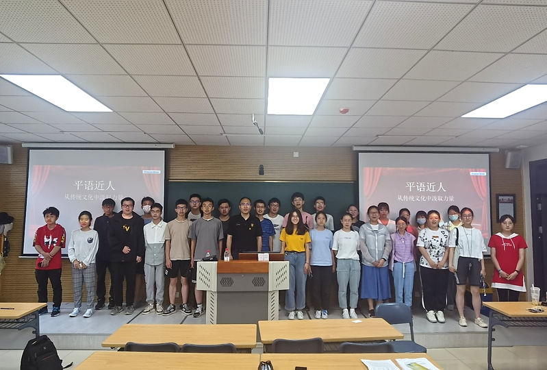 2021年6月9日,生物工程类2001班全体同学一号教学楼B103召开班会,。学院副书记兼副院长王超作为班级的对接中层领导干部为同学们做《讲好中国故事 阐扬文化自信》党课讲座,