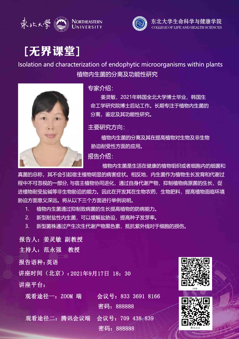 【无界课堂】系列讲座——韩国生命工学研究院姜灵敏副教授