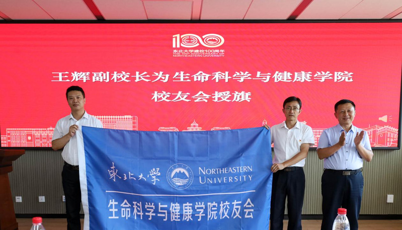 王辉为生命科学与健康学院校友会授会旗,并为生命科学与健康学院校友会会长、执行会长颁发聘书。东北大学校友总会负责人宣读了校友总会对生命科学与健康学院成立校友会的批复文件,为到场的学院校友会理事颁发了聘书。