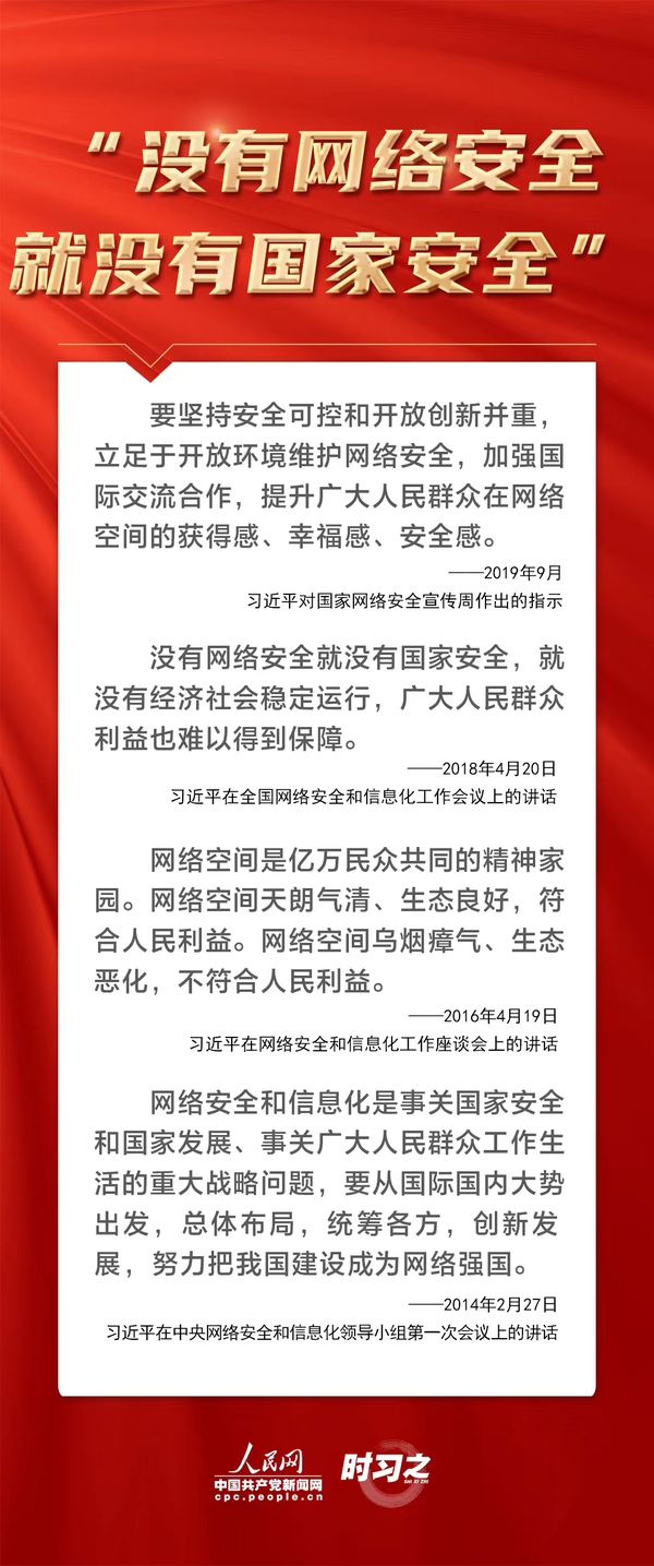 没有网络安全就没有国家安全。一直以来,习近平总书记高度重视网络安全和信息化工作,敏锐把握信息时代“时”与“势”,多次在不同场合就网络安全发表一系列重要论述,为维护国家网络安全,筑牢国家网络安全屏障奠定基石。